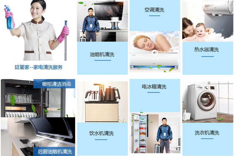 廷管家服務(wù)項目包含自來水管道清洗、油煙機清洗、空調(diào)清洗、熱水器清洗、飲水機清洗等多項家電清洗業(yè)務(wù),安全便捷又放心!