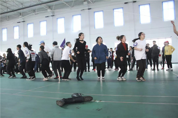 “歡樂袋鼠跳”比賽過后,緊接著來到了團(tuán)體跳繩的比拼中。團(tuán)體跳繩既要求搖繩隊(duì)員的搖繩技巧和節(jié)奏控制,又要求跳繩隊(duì)員的體力、耐力和反應(yīng)力,更重要的是大家的配合無間,對團(tuán)隊(duì)精神要求甚高。